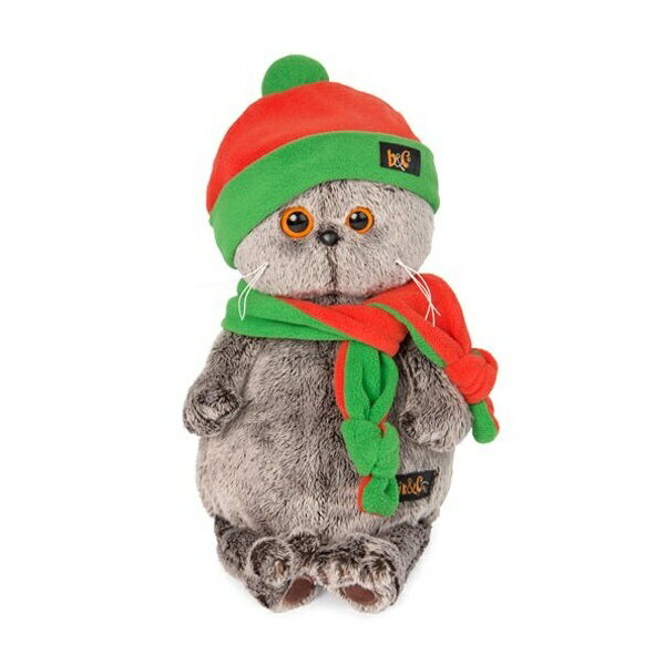 とっても目を引くオレンジと緑のぼんぼん帽子とマフラーをしたバーシック。